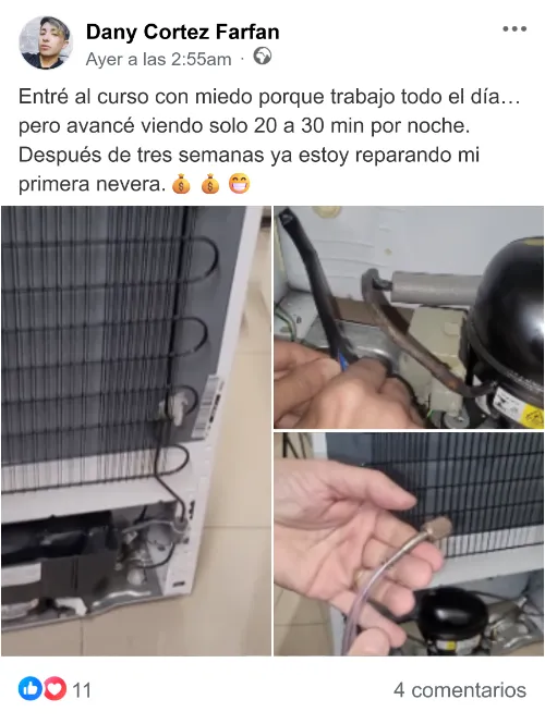 Un programa diseñado para que cualquier persona sin importar su nivel de experiencia pueda aprender a reparar neveras de manera profesional.
